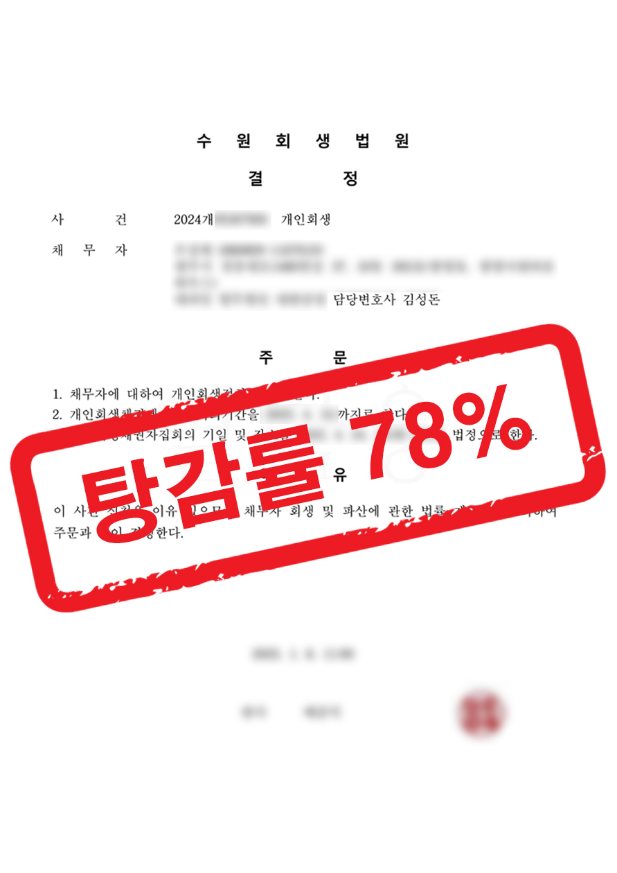 법무법인 해든은 이 소득을 기반으로 생활비를 제외한 월 63만 원 상환안을 설계하였고, 법원은 현실성 있는 안으로 판단해 78%의 탕감 결정을 신속히 인가했습니다.